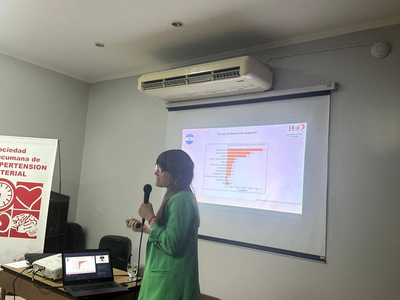 La jornada contó con la disertación de la Dra. Mariana Pérez, miembro de la Sociedad Argentina de Hipertensión Arterial (SAHA) e integrante del grupo HTA y Mujer, quien abordó el tema “Estados hipertensivos en el embarazo”, poniendo especial énfasis en un concepto clave: el seguimiento de la mujer no finaliza con el parto.